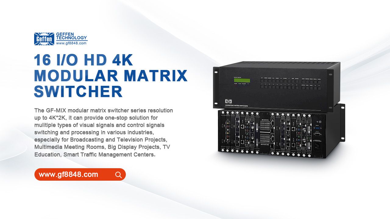 The GF-MIX modular matrix switcher series are a group of flexible configuration switchers which can cross-switch multiple types of signals. High-performance hardware design ensures its support for various high definition digital and analog signals, bi-directional RS-232 and IR control and signal management.