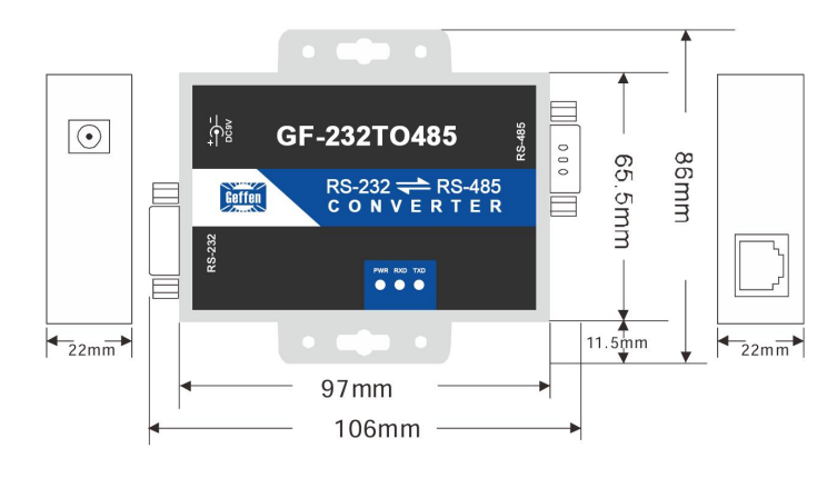 GF-232TO485 Interface Converter is compatible with RS-232C and RS-485 standards. It is capable of converting single-ended RS-232 signals into balanced differential RS-485 signals. Built-in with a fast transient voltage suppression protector, the device is designed to safeguard the RS-485 interface.