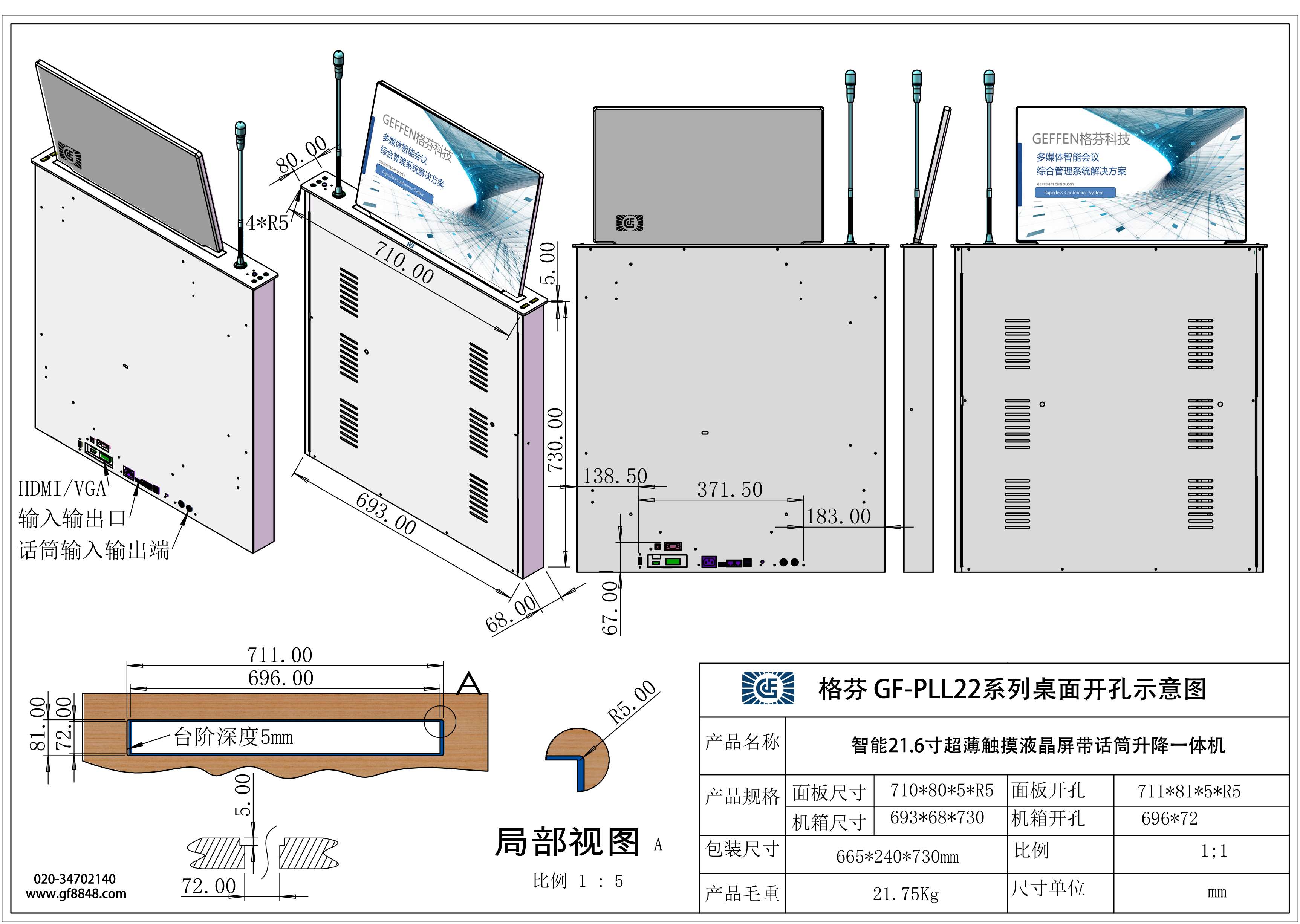 Product interface: The display interface of the lifter is outside the box, and customers can choose VGA or HDMI input signals according to their needs
