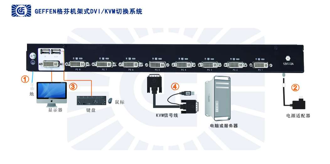 2. KVM port of 8~16 channels DVI interface, link the server through KVM module