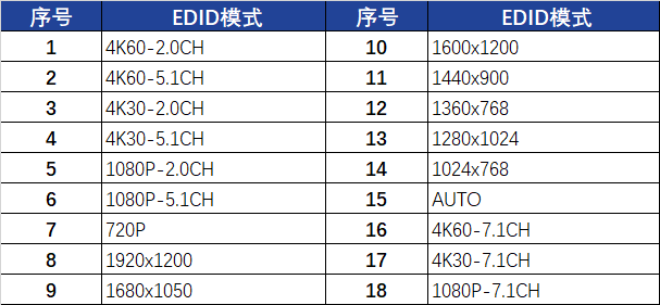 Users can select the following EDID modes through serial port commands or OSD menus