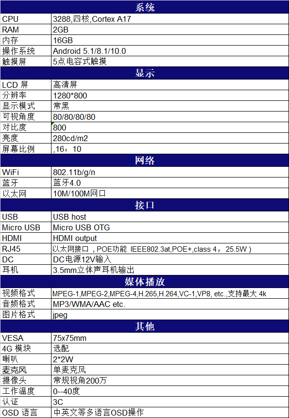 Smart screen, support Wii and Ethernet, support POE power supply.