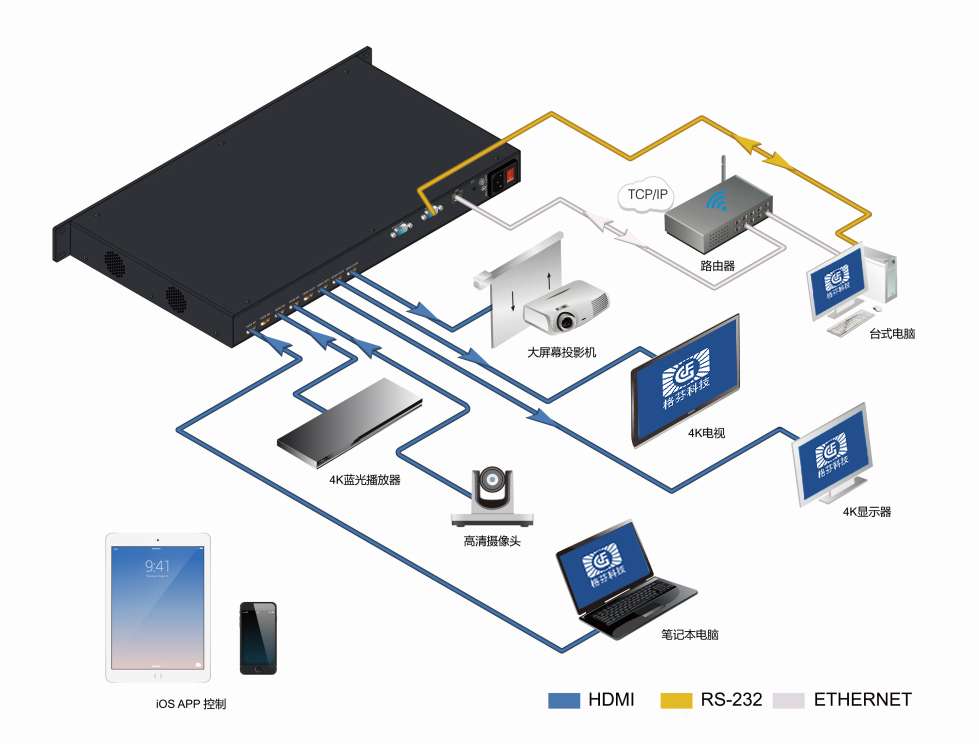 They support computer video to 1920x1200 and HDTV to 1080p as well as embedded audio and control signals, and enable the routing of content from Blu-ray Disc players and other content-protected sources to one or more displays. They are available in I/O sizes 4x4, 4x8, and 8x8.