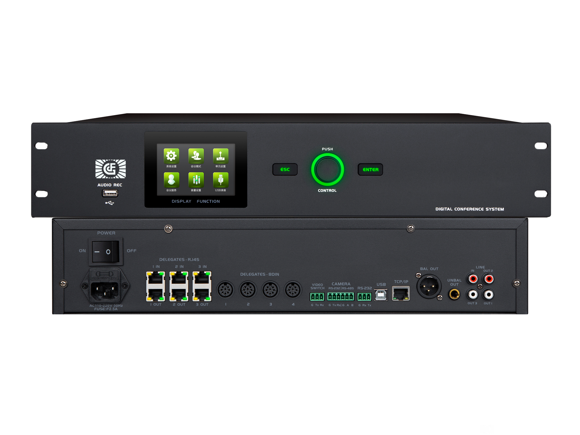 ●In line with IEC60914 and GBT15381-94 international standards, it adopts all-digital conference technology, developed based on digital network architecture, and has a built-in high-performance CPU processor, with faster processing speed and better sound quality.