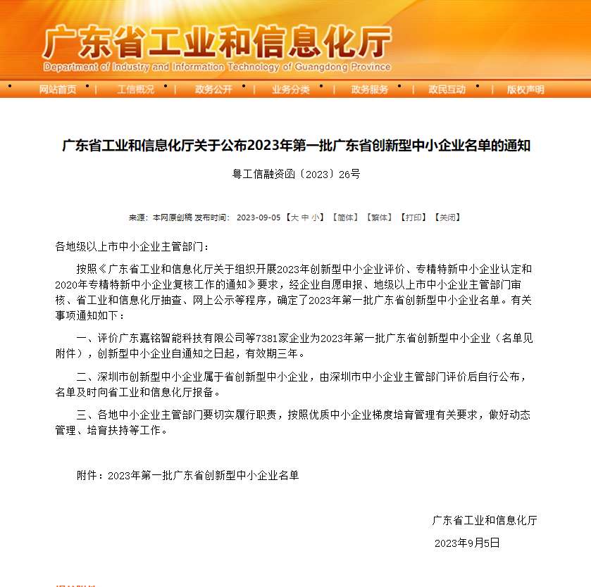 Recently, the Guangdong Provincial Department of Industry and Information Technology announced the 2023 first batch of innovative small and medium-sized enterprises in Guangdong Province, and Guangzhou Gefen Electronic Technology Co., Ltd. (hereinafter referred to as "Gefen Technology") has successfully passed the "Guangdong Province Innovative Small and Medium-sized Enterprises" certification by virtue of its own technical level and innovation capabilities。