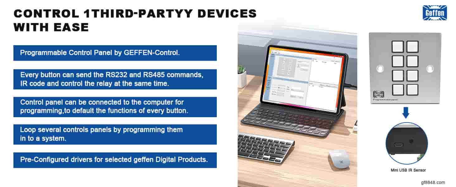 Painel mural de controle programável com 8 teclas GF-PR8 A Geffen Technologies é o fabricante original deste produto.