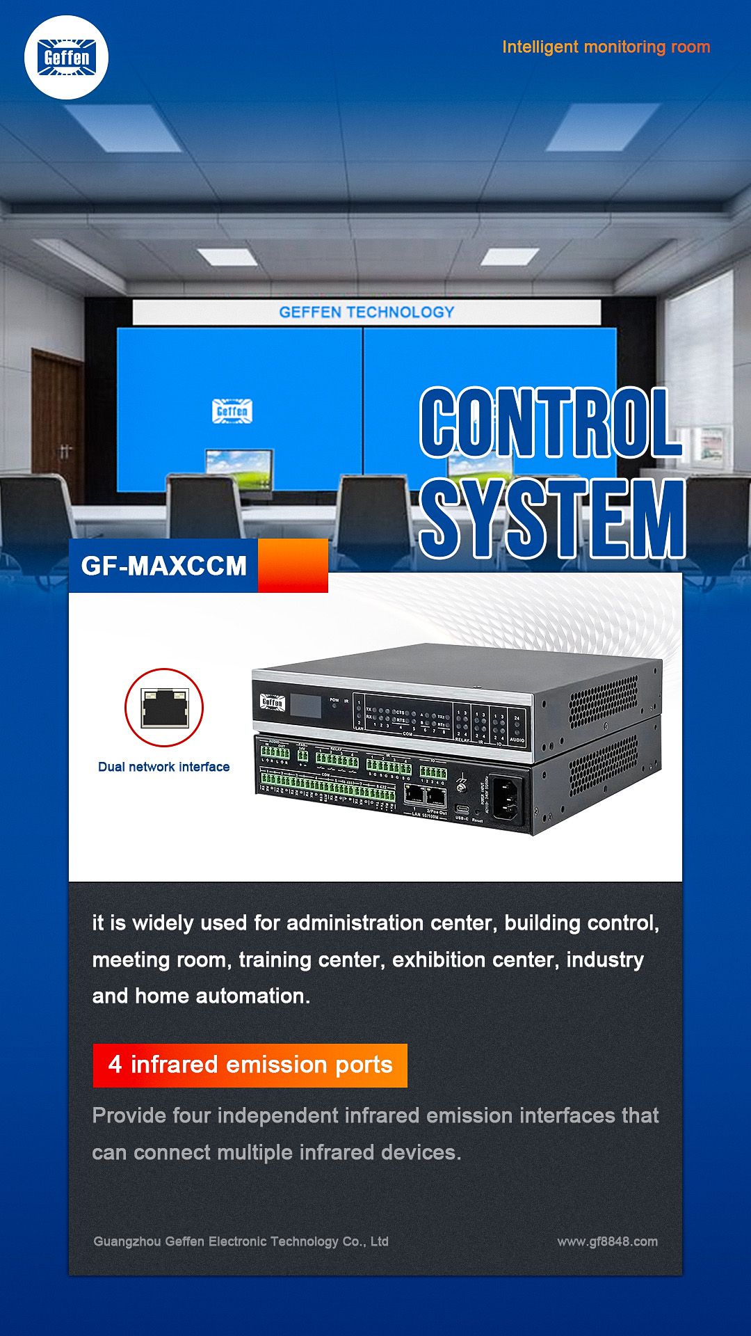 Программируемая Центральная Управляющая Система GF - MAXCC может управлять широким спектром устройств. Она может управлять аудио - видео оборудованием, таки как проекторы, аудиосистемы и видеоконференц - оборудование. Например, она может включать/выключать проектор, переключать источник ввода аудио - усилителя и запускать/останавливать видеоконференцию. В офисной конференц - комнате, когда пользователь нажимает кнопку "Запустить встречу" на панели управления, центральная управляющая система может отправить команды для включения проектора, установки его на правильный вход для подключения ноутбука и регулирования громкости динамиков до соответствующего уровня.
