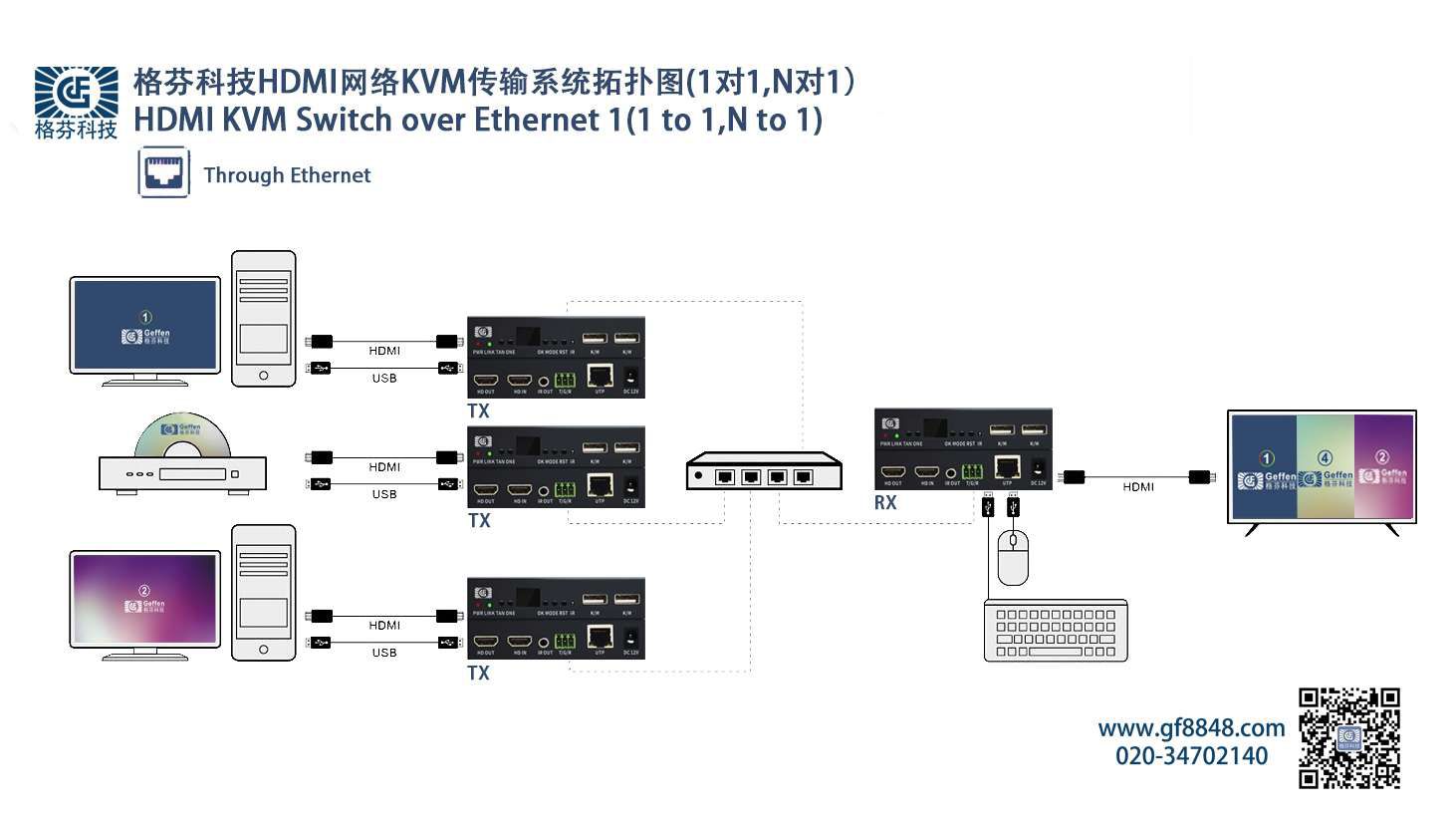 ●supports USB (Keyboard, Mouse) extension over IP;