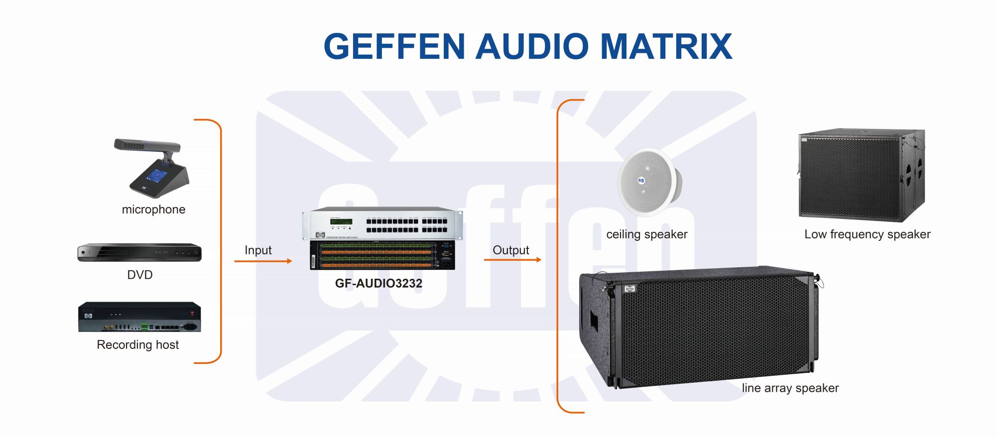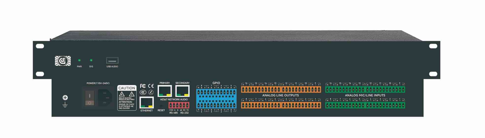 ●GF-AUDIO1616: 16-channel audio input and 16-channel audio output, supporting full cross-switching